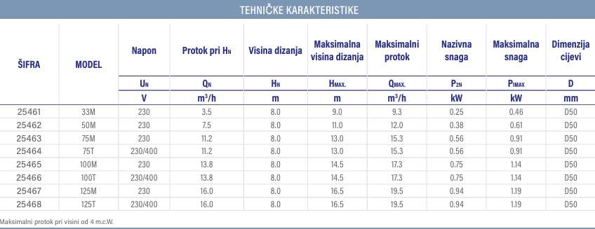 Kompaktna samousisna pumpa s jednofaznim i trofaznim motorima. GS oznaka. Oznaka zaštite IP-55, izolacija F klase i AISI-316 nehrđajući čelik za sve komponente u izravnom kontaktu s vodom.